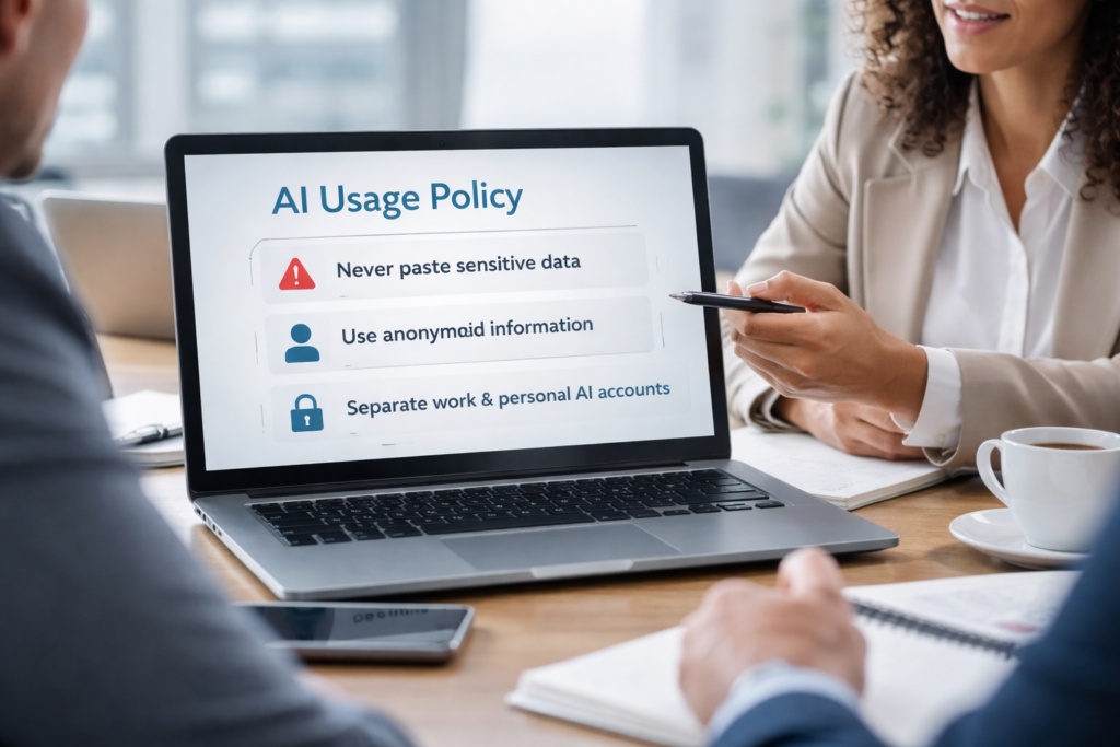 Most companies are in the “trust” phase: “We trust our team to use common sense.” That works until a tired employee pastes a payroll spreadsheet to find a formatting error. Without a one-page “Allowed/Not Allowed” list, your team is guessing.